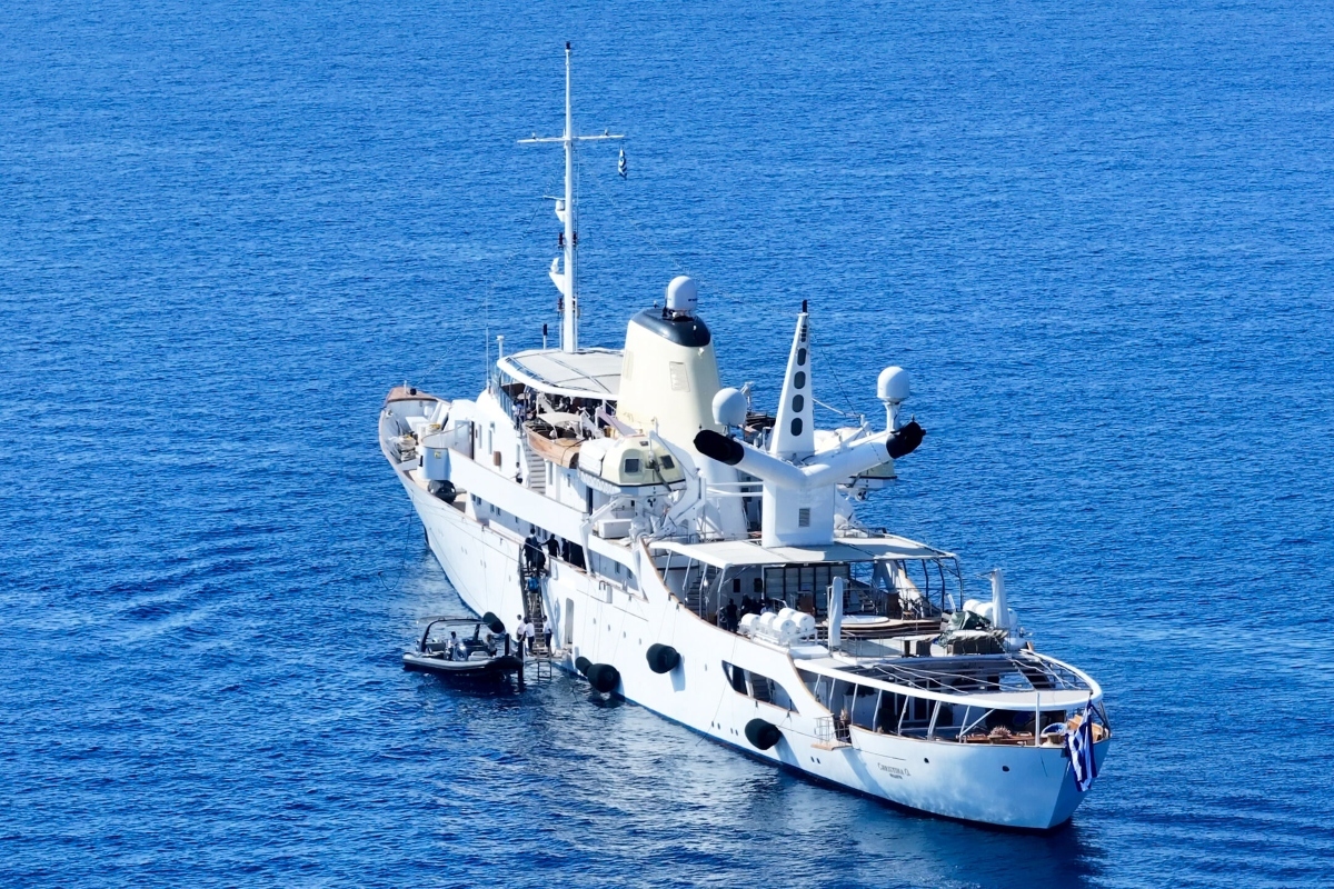 Από νωρίς το πρωί, το κινηματογραφικό συνεργείο, βρίσκεται στη θρυλική θαλαμηγό του Αριστοτέλη Ωνάση, Christina O‘, στο Κατάκολο, και εγκαθιστά τον εξοπλισμό και τα σκηνικά αντικείμενα, που απαιτούνται για να ξεκινήσουν τα γυρίσματα της ταινίας.