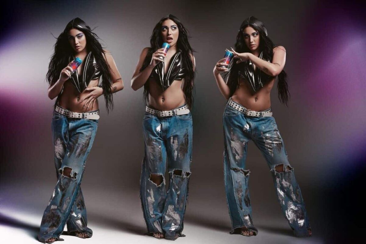 Φορώντας ένα cropped ασημένιο τοπ, ένα distressed τζιν, γαλάζια σκιά ματιών, ένα ασημένιο δαχτυλίδι στον αφαλό και μια λευκή ζώνη με καρφιά, πόζαρε για τη φωτογράφιση, συμπληρώνοντας την εμφάνισή της με χαλαρούς κυματισμούς στα μακριά κορακί μαλλιά της.