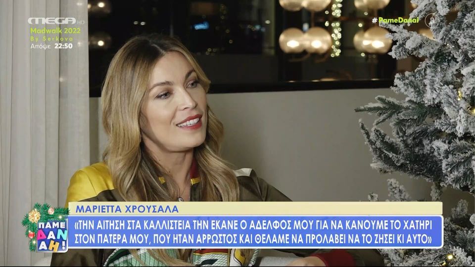 «Ο μπαμπάς μου ήθελε να πάω στα καλλιστεία. Όταν αρρώστησε και καταλάβαμε ότι τα πράγματα ήταν δύσκολα, ήθελα να του κάνω το χατίρι και να το δει. Το έκανε ο αδερφός μου για να κάνουμε το χατίρι στον μπαμπά μου για να του φτιάξουμε τη διάθεση. Ο μπαμπάς τα πρόλαβε τα καλλιστεία. Τραγική ειρωνεία ότι «έφυγε» ανήμερα των Miss Universe. Βρισκόμουν στον Παναμά κι η παραγωγή είχε προστατεύσει την είδηση… Ήταν πρώτη φορά που έβγαινα εκτός Ελλάδας και να μάθω κάτι τέτοιο… Ήταν άρρωστος, αλλά είχε λίγο καιρό. Ευτυχώς το έμαθα όταν ήρθα στην Ελλάδα. Με περίμεναν για την κηδεία» ανέφερε αρχικά η Μαριέττα Χρουσαλά.
