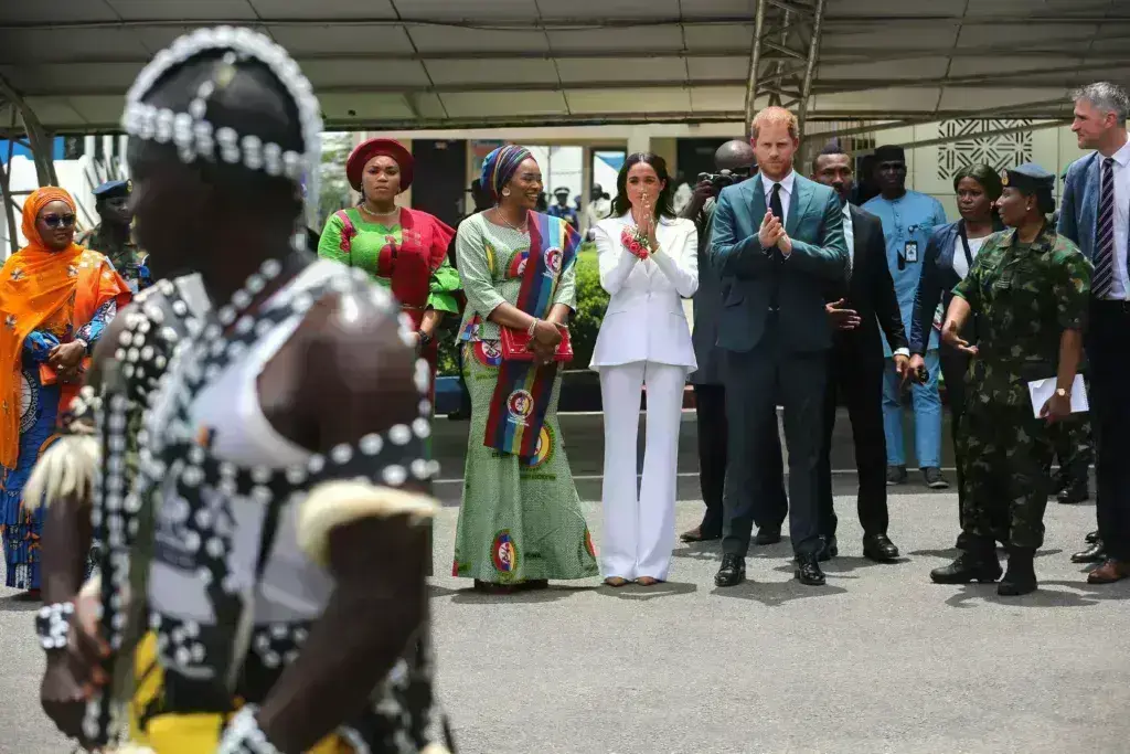Η Μέγκαν προσπάθησε να μπει στο mood της επίσκεψης, χωρίς να ξεχνά τα ακριβά της γούστα. Για παράδειγμα, την πρώτη μέρα, απαθανατίστηκε με λευκό κοστούμι και Manolo Blahnik παπούτσια ενώ το χέρι της κοσμούσε ένα ρολόι Cartier.