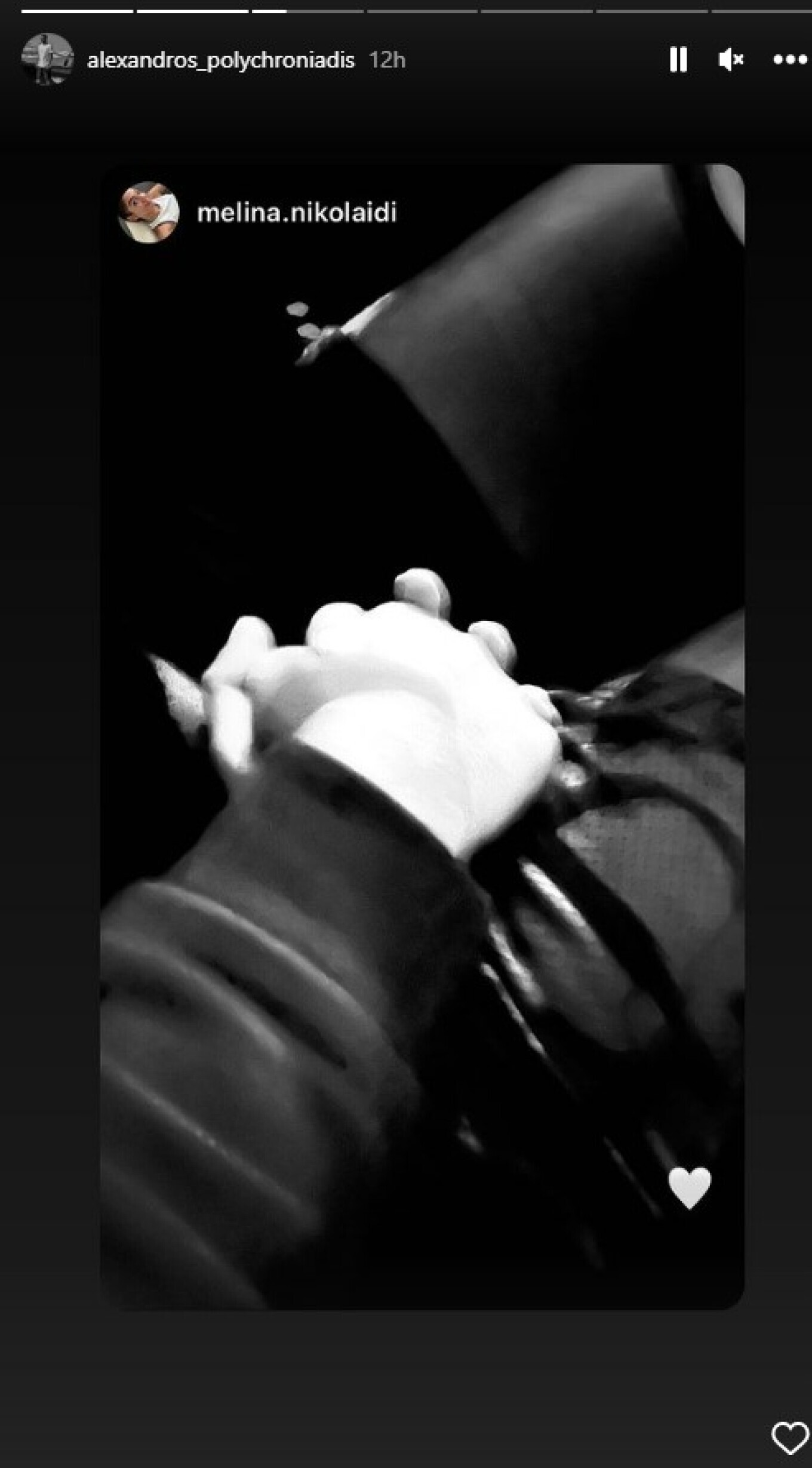 Η φωτογραφία δημοσιεύθηκε από την ίδια σε Instagram Story και ο Αλέξανδρος Πολυχρονιάδης την αναδημοσίευσε στο δικό του προφίλ.