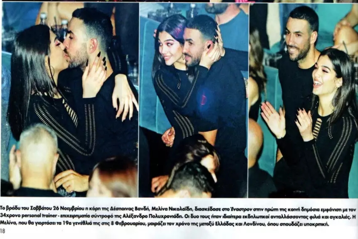 Η κόρη της Δέσποινας Βανδή και του Ντέμη Νικολαΐδη είναι ερωτευμένη και αυτός είναι ένας από τους πιο όμορφους λόγους για να έρχεται συχνότερα στην Αθήνα. Πιο συγκεκριμένα, η 18χρονη Μελίνα διατηρεί σχέση εδώ και μερικούς μήνες με τον 34χρονο personal trainer και επιχειρηματία Αλέξανδρο Πολυχρονιάδη.