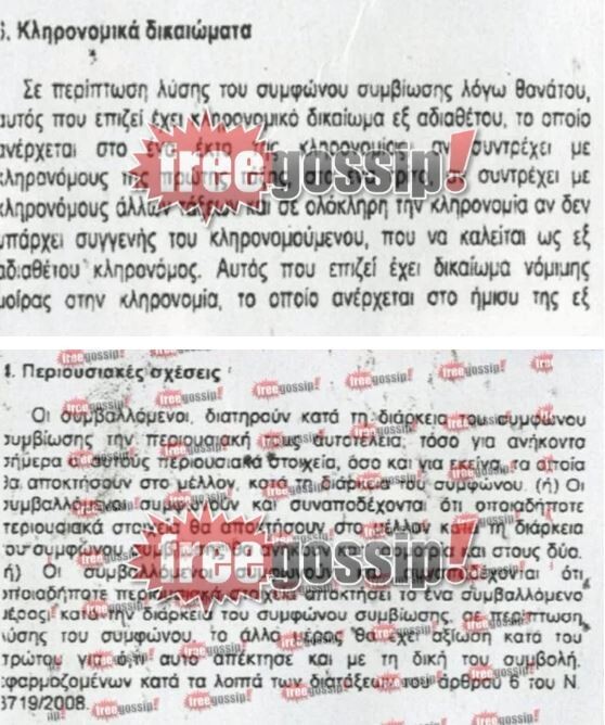 Το εν λόγω σύμφωνο συμβίωσης, που μπορείτε να το διαβάσετε στις φωτογραφίες που ακολουθούν, υπεγράφη 7 χρόνια πριν.