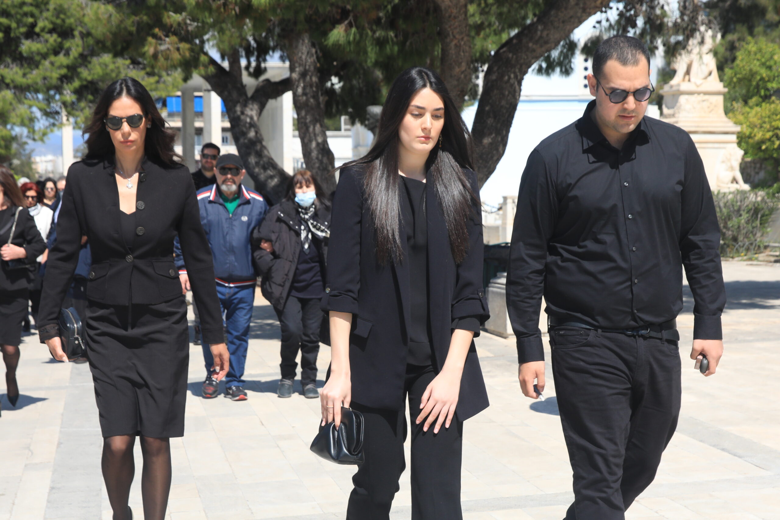 Τα δύο παιδιά του, Χρήστος και Μάιρα, έφτασαν στην εκκλησία χωρίς τη μητέρα τους και άρχισαν να αγκαλιάζουν συγγενείς και φίλους.