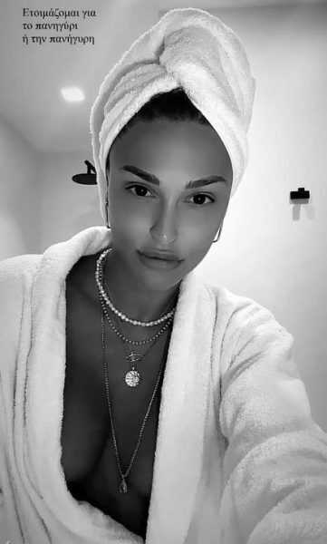 Στην τελευταία της ανάρτηση φορά μόνο ένα μπουρνούζι που ήταν ανοιχτό στα επίμαχα σημεία. «Ετοιμάζομαι για το πανηγύρι ή την πανήγυρη» έγραψε χαρακτηριστικά αλλά μάλλον ουδείς πρόσεξε το συγκεκριμένο σχόλιο στην ιστορία της.