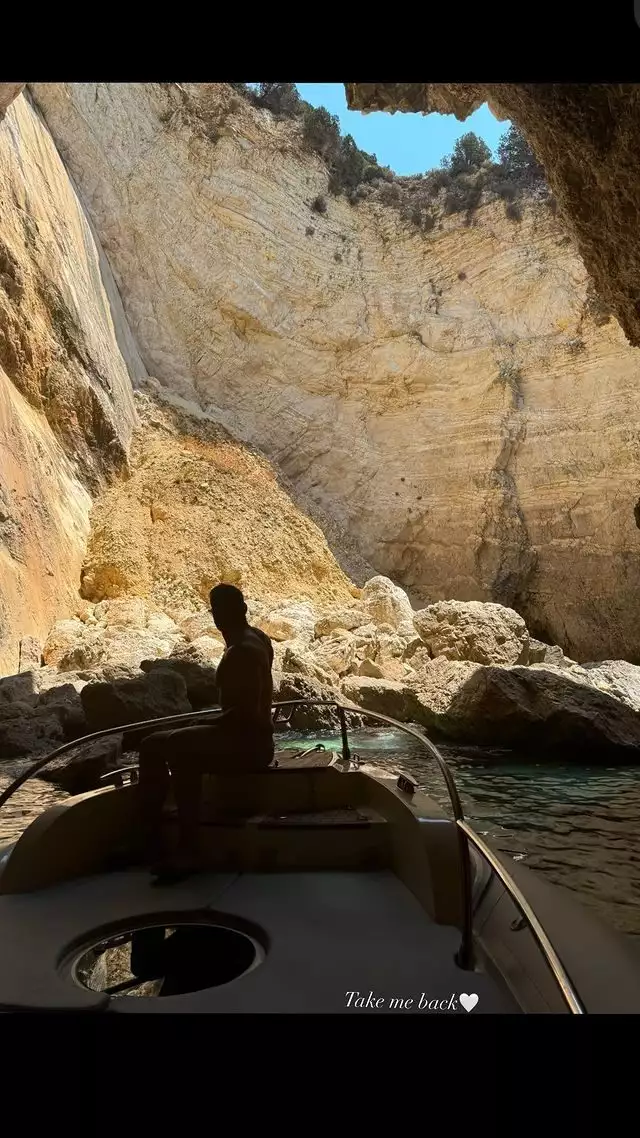 Η νεαρή φωτογραφίζει τον αγαπημένο της στο σκάφος με θέα μια εντυπωσιακή σπηλιά και τη συνόδευσε γράφοντας: «Πηγαίντε με πίσω».