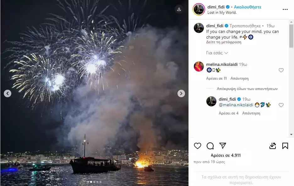 Τόσο ο Δημήτρης Φιντιρίκος όσο και η Μελίνα Νικολαΐδη μοιράστηκαν βίντεο και φωτογραφίες από την εξόρμησή τους στις Σπέτσες, με αφορμή το «κάψιμο της Αρμάτας».
