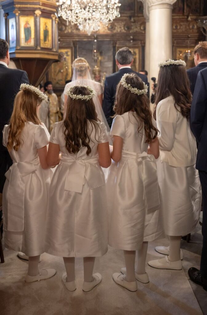 Στη δημοσιότητα δίνονται συνεχώς νέες φωτογραφίες, που αποτυπώνουν τον ρομαντισμό και την τρυφερότητα. Χαρακτηριστικά, στο site της τέως βασιλικής οικογένειας, αναρτήθηκαν δύο στιγμιότυπα. Στο πρώτο βλέπουμε τα τέσσερα παρανυφάκια που κρατούσαν διακριτικά το μακρύ πέπλο της νύφης, ασορτί ντυμένα με λευκά φορέματα με εντυπωσιακό φιόγκο στην πλάτη.
