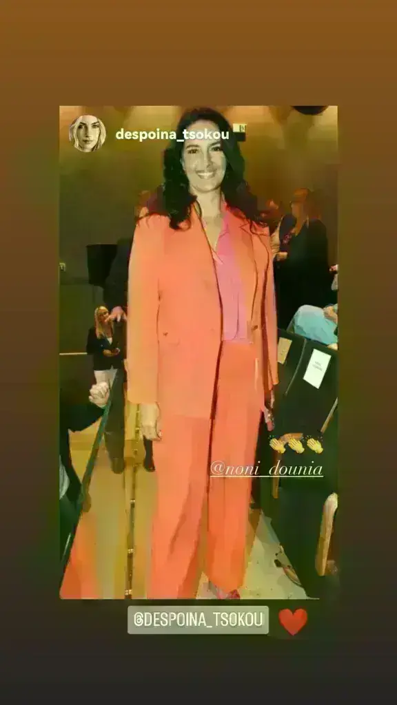 Υποψήφια είναι και η Νόνη Δούνια, η οποία μαγνήτισε τα βλέμματα με το ιδιαίτερο look της. Ακολουθώντας τα παγκόσμια trends, η Νόνη προτίμησε ένα πορτοκαλί κοστούμι δημιουργώντας την τέλεια αντίθεση με φούξια πουκάμισο
