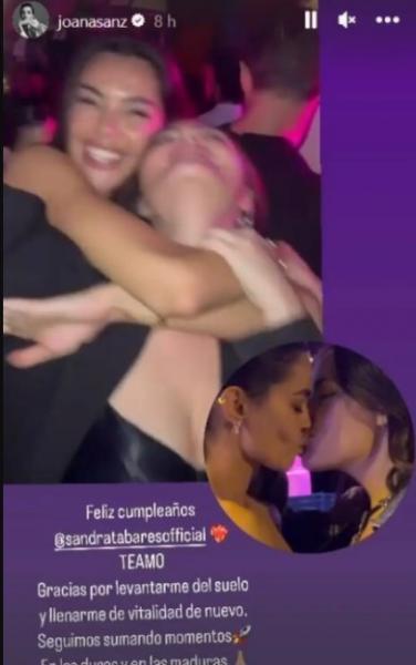 Μάλιστα, η Ισπανίδα δεν έμεινε μόνο εκεί, καθώς ήταν διαχυτική όλο το βράδυ και φίλησε στο στόμα την κολλητή της, ως δώρο για τα γενέθλιά της, ανεβάζοντας και τη συγκεκριμένη φωτογραφία στα social media. «Χρόνια πολλά Sandra Tabarés. Σ ‘αγαπώ. Σε ευχαριστώ που με απογείωσες και με γέμισες ξανά ζωντάνια. Συνεχίζουμε να προσθέτουμε στιγμές» έγραψε η Τζοάνα Σανθ στο Instagram για την φίλη της και ανέβασε και την φωτογραφία με το φιλί.