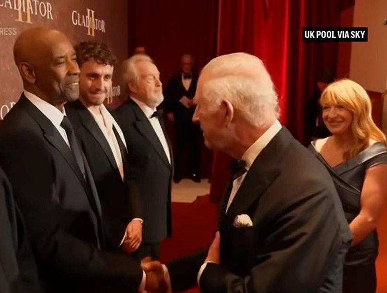 Ο βασιλιάς Κάρολος τότε του έκανε χειραψία, κάτι που φάνηκε να καθησυχάζει τον ηθοποιό. «Δεν ήξερα αν έπρεπε να σας πιάσω το χέρι ή όχι», είπε ο Ουάσινγκτον, χαμογελώντας καθώς έσφιγγαν τα χέρια τους.