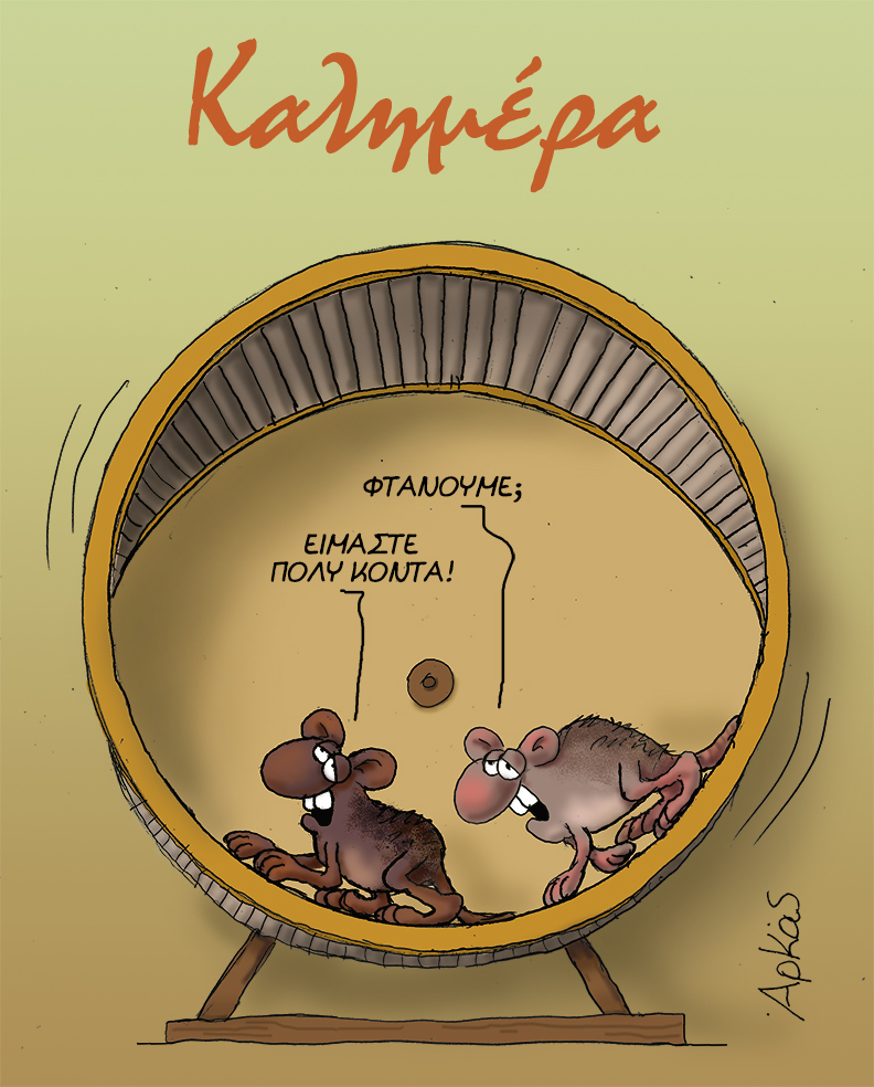 Δύο χάμστερ τρέχουν, περιμένοντας να φτάσουν στον προορισμό τους. Μόνο που αυτό είναι δύσκολο, καθώς τρέχουν σε μια ρόδα τρωκτικών.