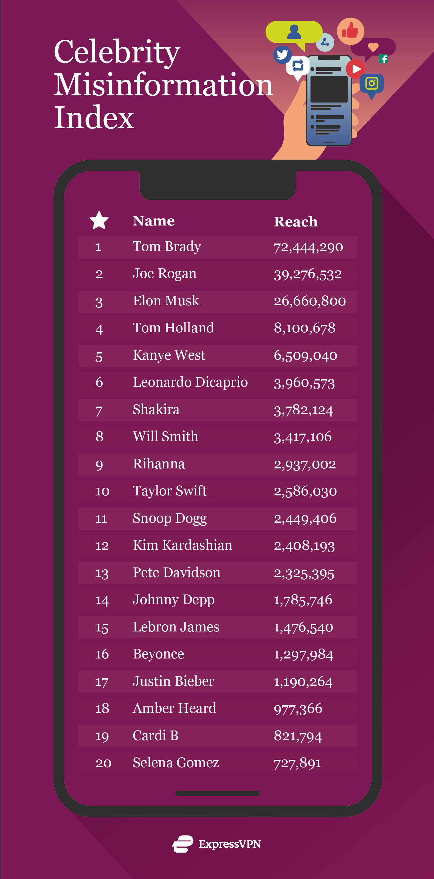 Η ExpressVPN ανέλυσε κορυφαίες διασημότητες που έχουν συνδεθεί με fake news, συμπεριλαμβανομένων των Tom Brady, Elon Musk και Kanye West.