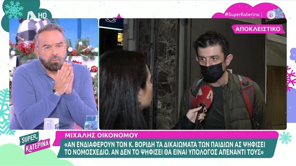 «Οι ομόφυλες οικογένειες δεν περιμένουν έγκριση από τη Βουλή, υπάρχουν και θα αυξάνονται συνέχεια. Ο κ. Βορίδης αν θέλει ας το ψηφίσει. Αν όχι θα είναι υπόλογος σε αυτά τα παιδιά», είπε αρχικά ο Μιχάλης Οικονόμου.