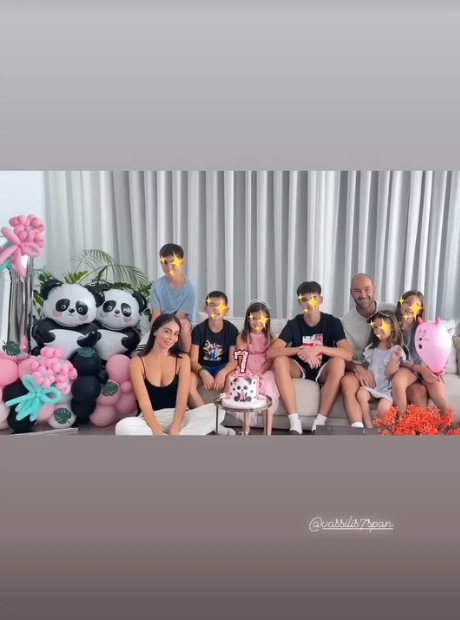 Το στιγμιότυπο, βέβαια, που έκλεψε τις εντυπώσεις ήταν εκείνο με το ζευγάρι και τα έξι παιδιά στο σαλόνι του σπιτιού τους. Η 8μελής οικογένεια πόζαρε χαμογελαστή στον μοντέρνο χώρο τους, που χθες γέμισε από μπαλόνια και λουλούδια.