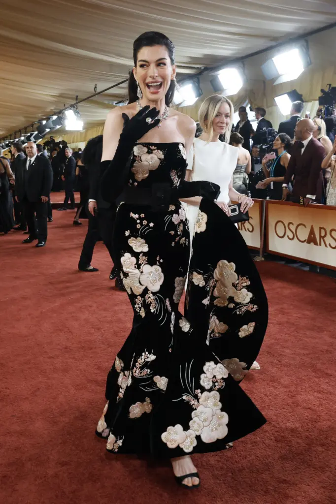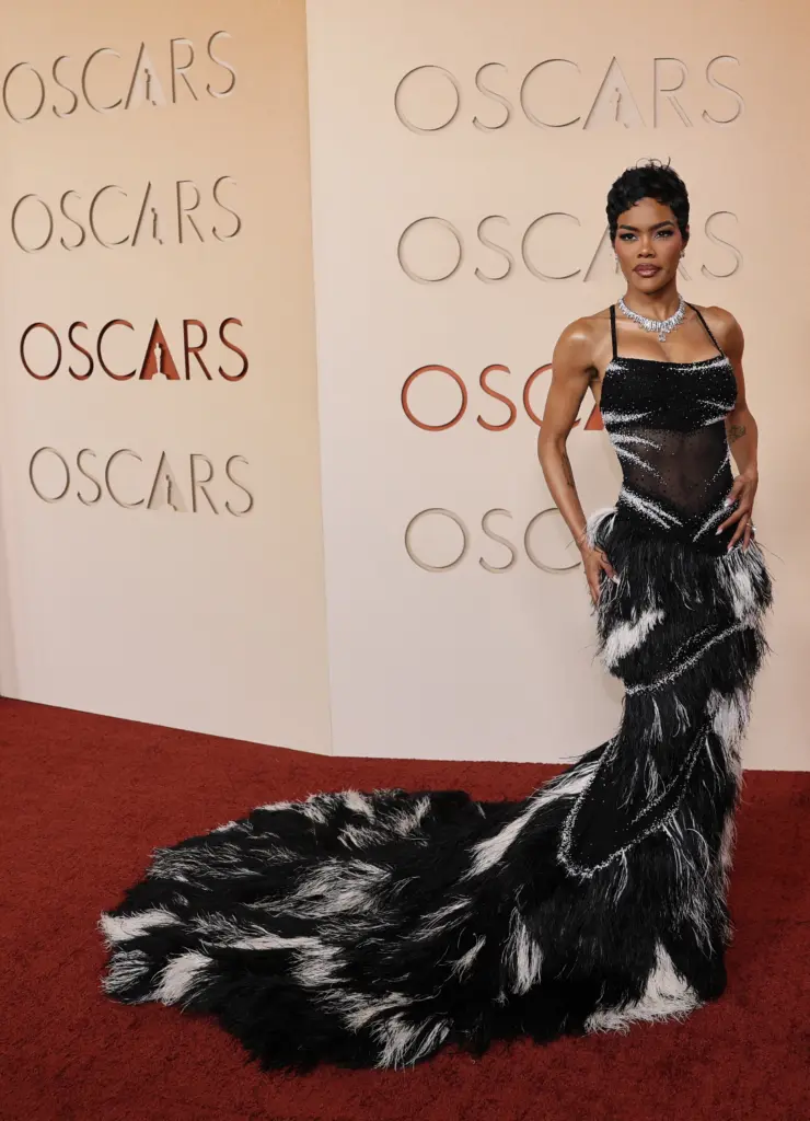 Η Τεγιάνα Τέιλορ ήταν από τις μεγάλες πρωταγωνίστριες δίνοντας ψήφο εμπιστοσύνης στον οίκο Chanel. Το φόρεμά της διέθετε ένα διάφανο μπούστο διακοσμημένο με ασημί αφηρημένες λεπτομέρειες, ενώ η φούστα αποτελούνταν από στρώσεις ασπρόμαυρων φτερών. Η λάμψη της ενισχύθηκε μέσα από μια επιλογή κοσμημάτων από τον οίκο Tiffany & Co. Συγκεκριμένα, η ηθοποιός φόρεσε ένα πλατινένιο περιδέραιο με ένα κεντρικό διαμάντι άνω των 18 καρατίων, το οποίο συνοδευόταν από κομψά σκουλαρίκια 12 καρατίων και δύο δαχτυλίδια με διαμάντια 11 και 9 καρατίων αντίστοιχα.
