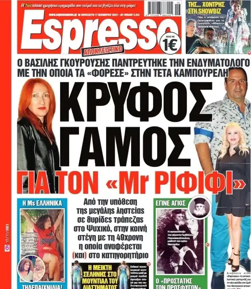 Το εξώφυλλο για τον κρυφό γάμο του Βασίλη Γκουρούση