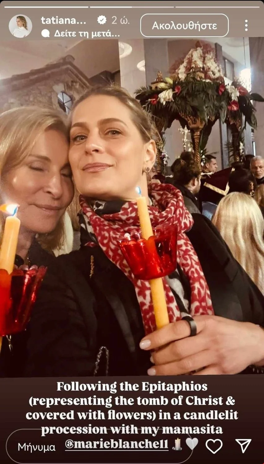 Μεταξύ άλλων, το βράδυ της Μεγάλης Παρασκευής η Τατιάνα Μπλάτνικ έδωσε το «παρών» στην περιφορά του Επιταφίου στην Μητρόπολη Αθηνών μαζί με τη μητέρα της.