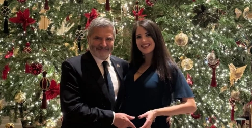 Ο πρώην περιφερειάρχης ανάρτησε το στιγμιότυπο στον προσωπικό του λογαριασμό στο Instagram γράφοντας στη λεζάντα: «Σε εορταστικό κλίμα, μετράμε αντίστροφα για τα Χριστούγεννα και με την Αναστασία περιμένουμε τη γέννηση του μικρού μας με το νέο έτος».
