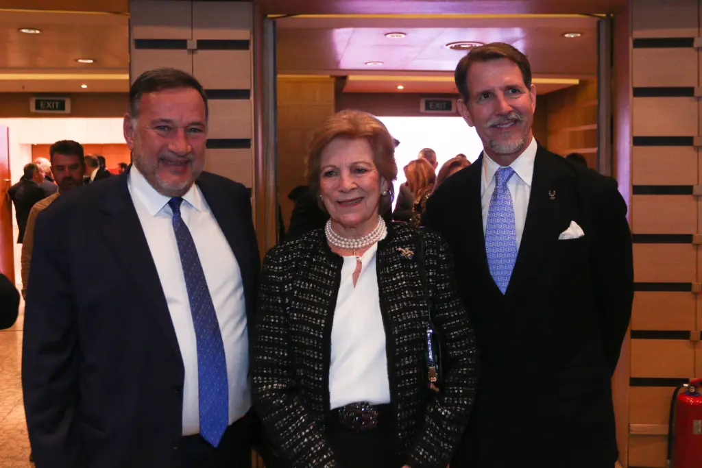Τον Παύλο Ντε Γκρες και την Άννα Μαρία υποδέχθηκαν στο Μέγαρο Μουσικής ο πρόεδρος της ΕΟΕ, Ισίδωρος Κούβελος, ενώ στο σημείο βρέθηκε και η σύζυγός του και βουλευτής της Νέας Δημοκρατίας, Ντόρα Μπακογιάννη.