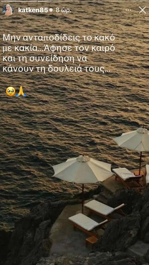 «Μην ανταποδίδεις το κακό με κακία… Άφησε τον καιρό και τη συνείδηση να κάνουν τη δουλειά τους», ήταν το μήνυμα της Κατερίνας Καινούργιου.