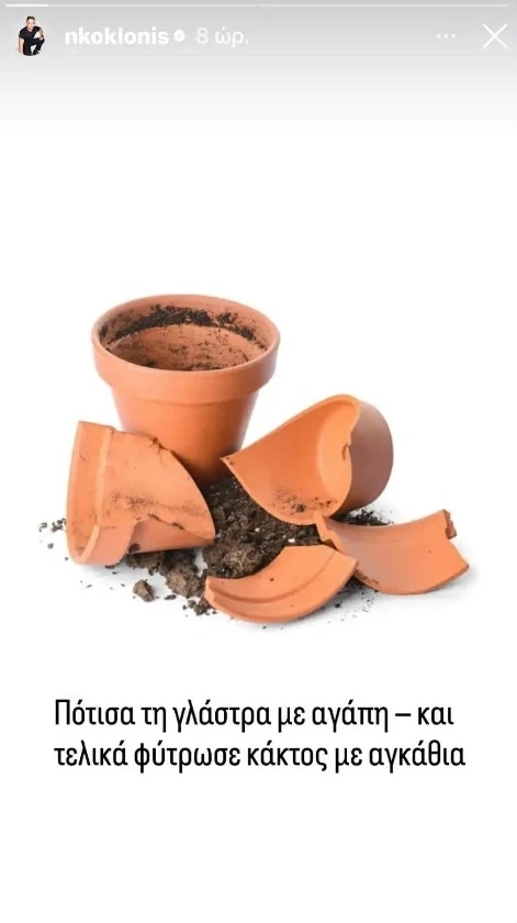 «Πότισα τη γλάστρα με αγάπη και τελικά φύτρωσε κάκτος με αγκάθια», ήταν οι αναρτήσεις – καρφιά του Νίκου Κοκλώνη.