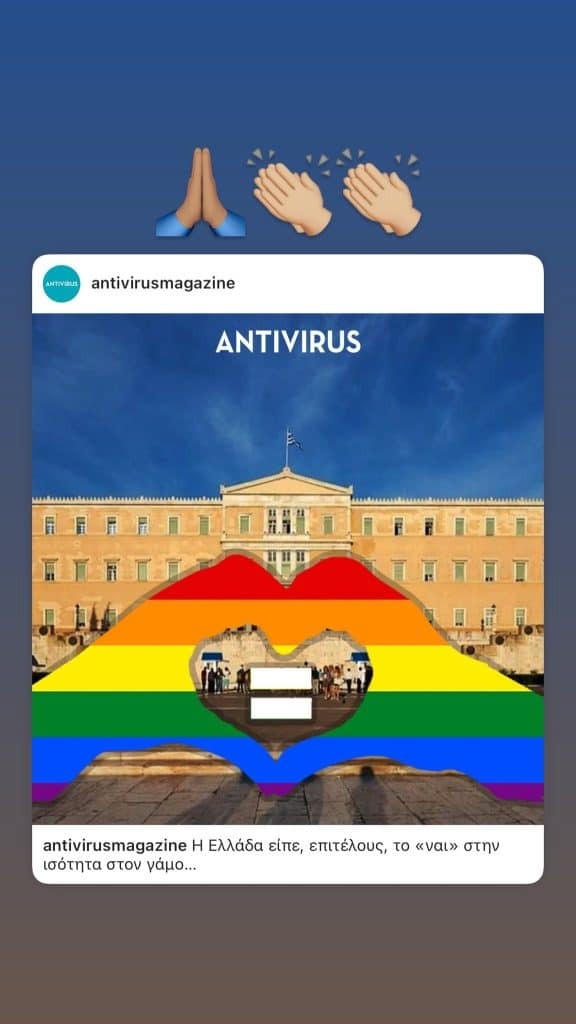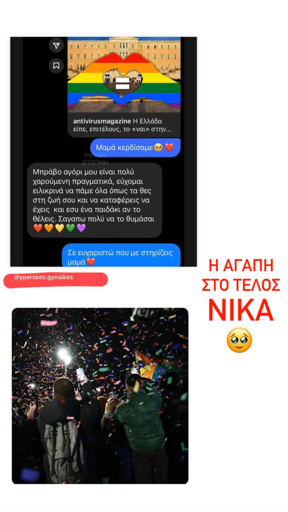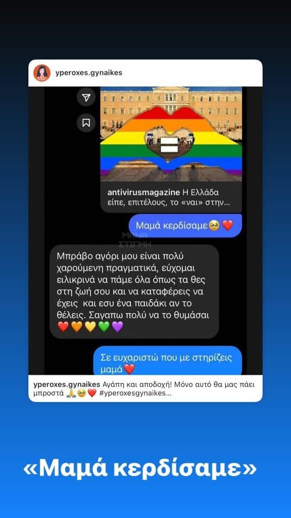 Η Βίκυ Καγιά προχώρησε στο δικό της story, δείχνοντας τη χαρά της για την υπερψήφιση του νομοσχεδίου.