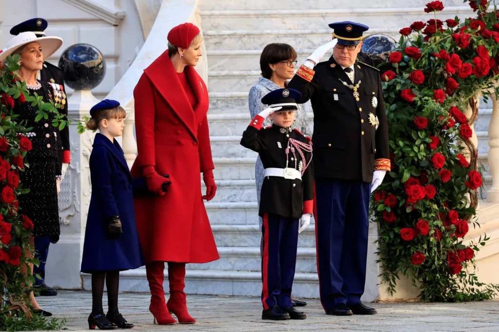Η πριγκίπισσα Σαρλίν προτίμησε ένα total red σύνολο με μπερέ, που αναδείκνυε μοναδικά την κομψότητά της. Οι φανατικοί των royals επισήμαναν τα υπέροχα παπούτσια της μικρής πριγκίπισσας.