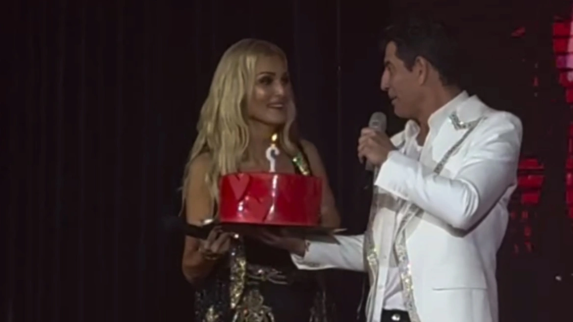 Ο Σάκης Ρουβάς ανέβηκε αιφνιδιαστικά στη σκηνή κρατώντας μια κόκκινη τούρτα και τραγουδώντας στη συναδέλφο του. Το κοινό αντέδρασε με χειροκροτήματα, ενώ η Νατάσα, φανερά συγκινημένη, ανταπέδωσε λέγοντας “ευχαριστώ πάρα πολύ”.