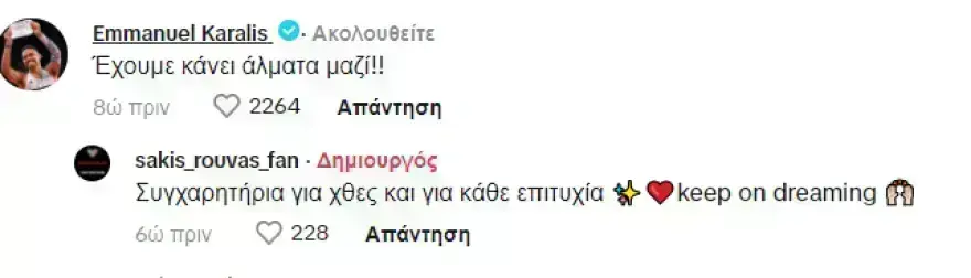 Το συγκεκριμένο κλιπ, έρχεται από την περίοδο που ο τραγουδιστής ασχολούνταν με τον στίβο και μέσα σε μερικές ώρες έγινε viral στην πλατφόρμα. Ανάμεσα σε όσους το είδαν, είναι και ο πλέον χάλκινος ολυμπιονίκης, Εμμανουήλ Καραλής, ο οποίος σχολίασε «έχουμε κάνει άλματα μαζί».
