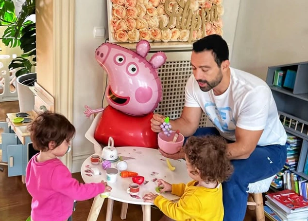 Στο βίντεο που δημοσίευσε ο Σάκης Τανιμανίδης ανήμερα των Χριστουγέννων, τον βλέπουμε να κάνει push ups με χριστουγεννιάτικη μουσική υπόκρουση και τις δίδυμες κόρες του να κάθονται στην πλάτη του.