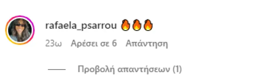 Πολλές από τις θαυμάστριές του, τον αποθέωσαν στα σχόλια της δημοσίευσης για το σώμα του, μεταξύ των οποίων και η σύζυγός του, Ραφαέλα Ψαρρού, η οποία έβαλε τρία emoji φωτιάς σε σχόλιο. «Ονειρεμένη πρωινή θέα», «Ωραίος» και «Μας άναψες φωτιές ρε παιδί μου» του έγραψαν μερικές φαν του.