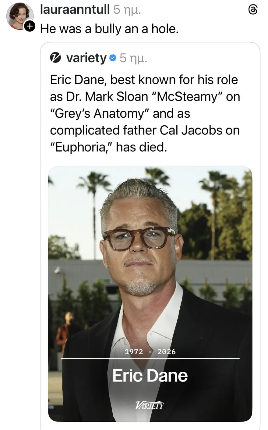 Έντονες αντιδράσεις για ηθοποιό που έβρισε δημόσια τον Έρικ Ντέιν μετά τον θάνατό του: «Ντροπή σου» γράφουν στα social media