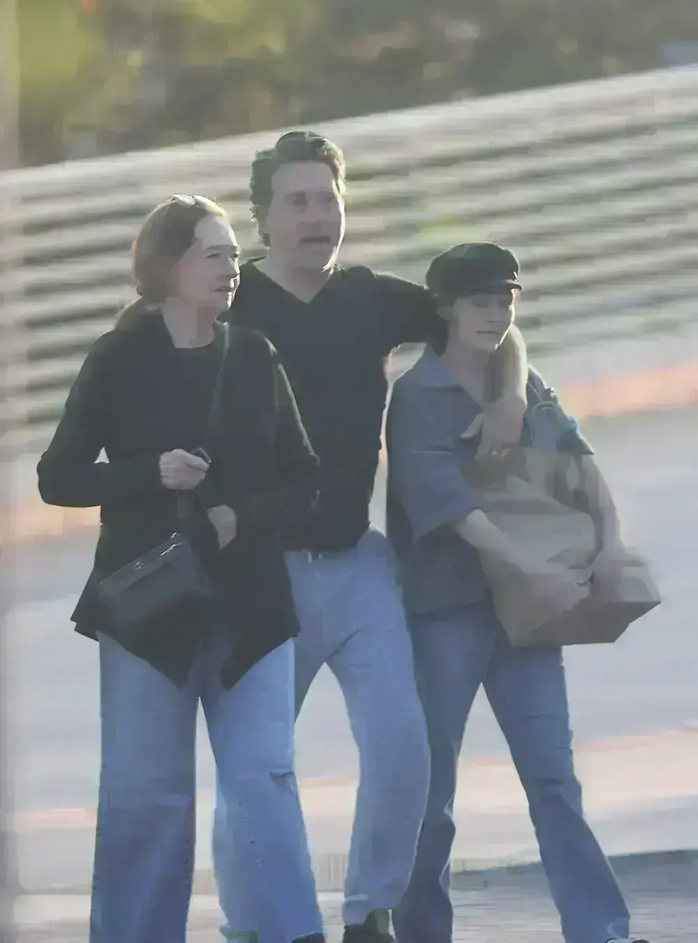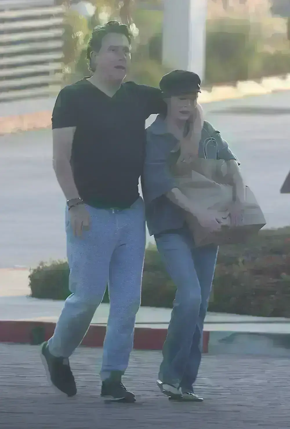 Η ηθοποιός φόρεσε ένα τζιν παντελόνι και ένα μεγάλο μπλουζάκι με κουμπιά σε συνδυασμό με ένα μαύρο καπέλο για εφημερίδες. Στην αγκαλιά της κρατούσε μια καφέ χάρτινη σακούλα.