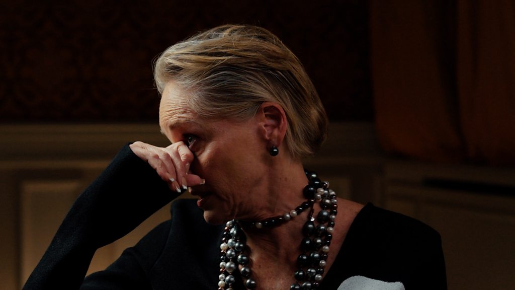 Αν και είχαν μιλήσει για την πολιτική, τη ζωγραφική και το Χόλιγουντ, ξαφνικά βάζει το χέρι της στα μάτια της, κάνει μια μεγάλη παύση και μετά αρχίζει να κλαίει.