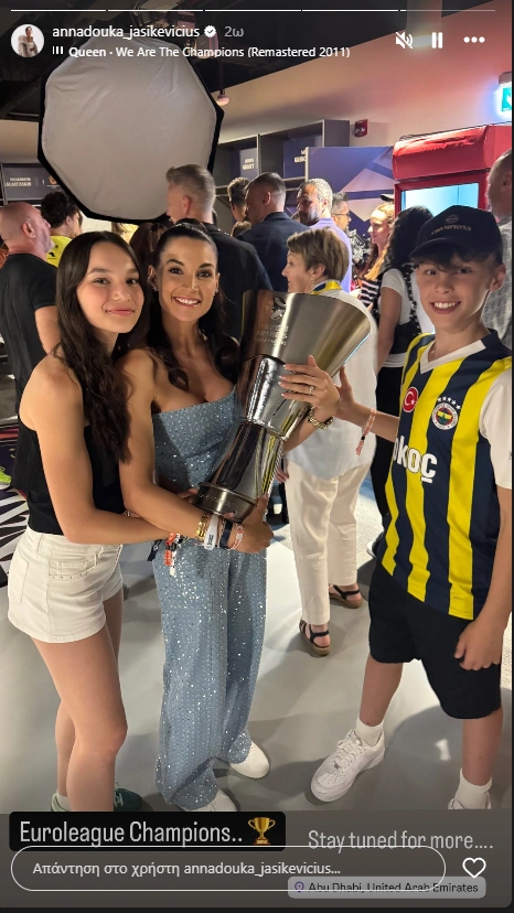 H Άννα Δούκα Γιασικεβίτσιους μετά τον θρίαμβο του συζύγου της, δημοσίευσε στον λογαριασμό της στο instagram κάποιες οικογενειακές φωτογραφίες με το τρόπαιο και έγραψε, «Πρωταθλητές Ευρώπης…Μείνετε συντονισμένοι για περισσότερα (σ.σ τρόπαια)»,