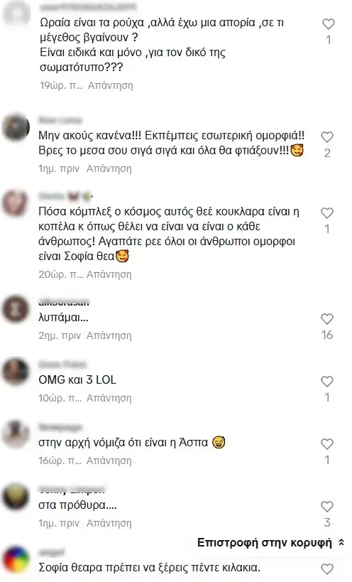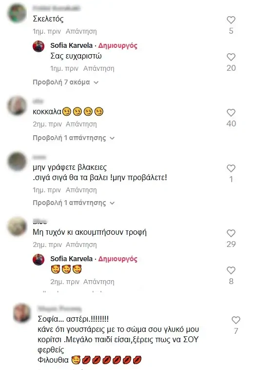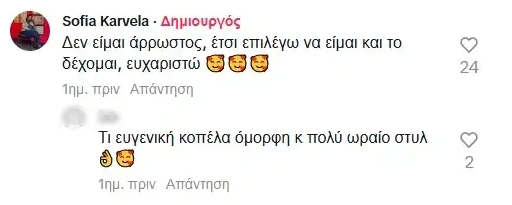 Η Σοφία Καρβέλα με σχόλιό της κάτω από τη δημοσίευση στο Instagram γράφει: «Δεν είμαι άρρωστη, έτσι επιλέγω να είμαι και το δέχομαι, ευχαριστώ»