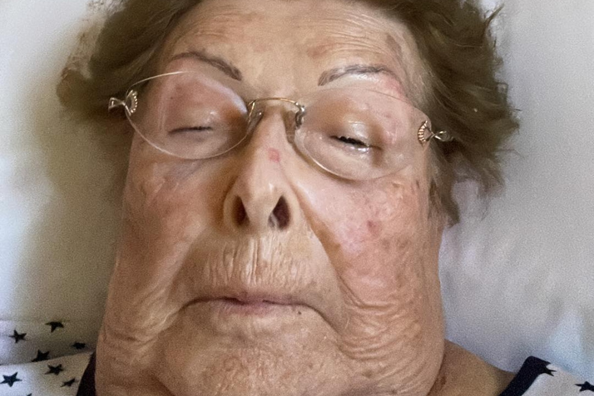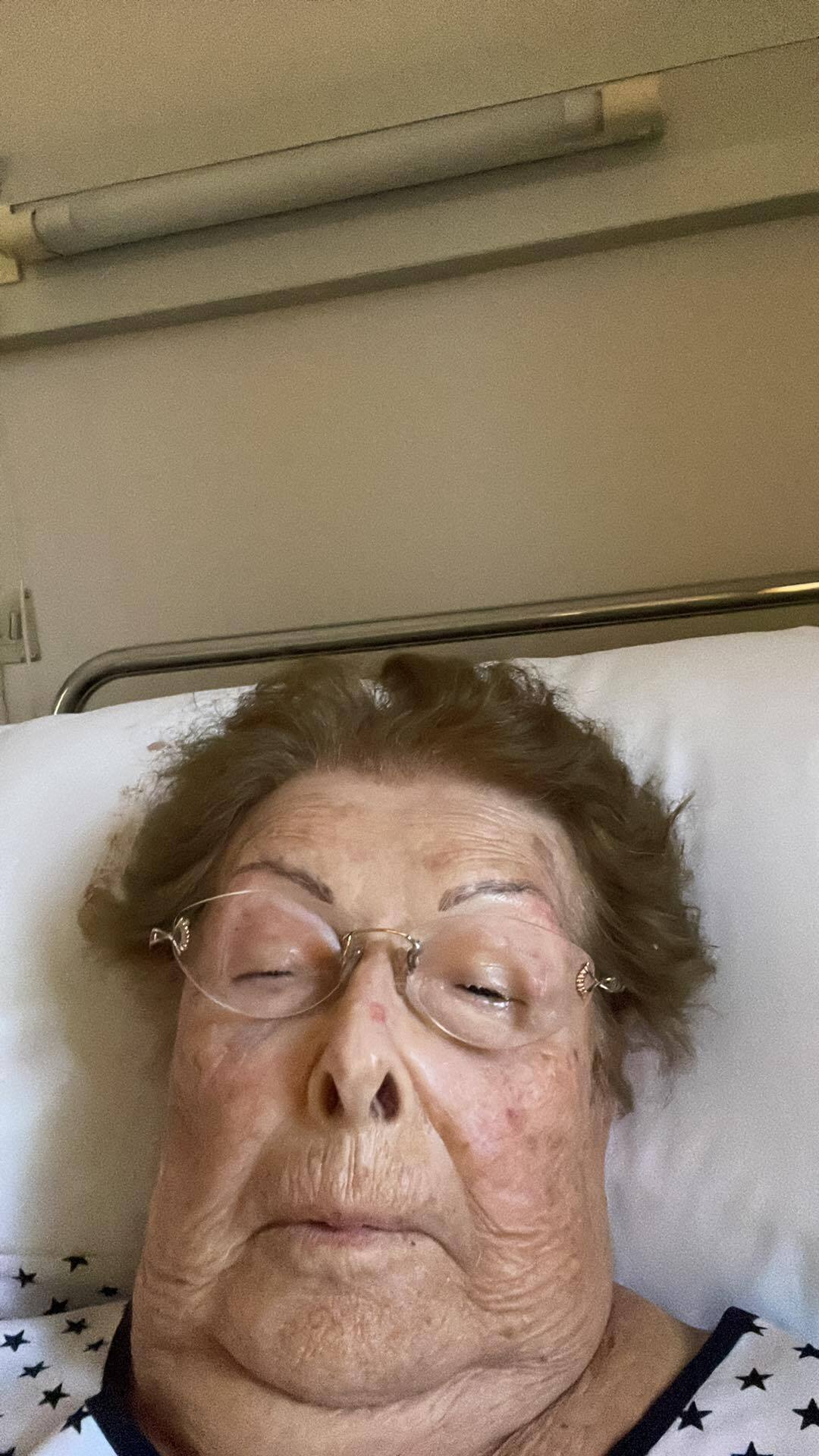 Στη φωτογραφία, η Βέφα Αλεξιάδου φαίνεται καταβεβλημένη στο κρεβάτι, χωρίς να εξηγεί τι έχει συμβεί.