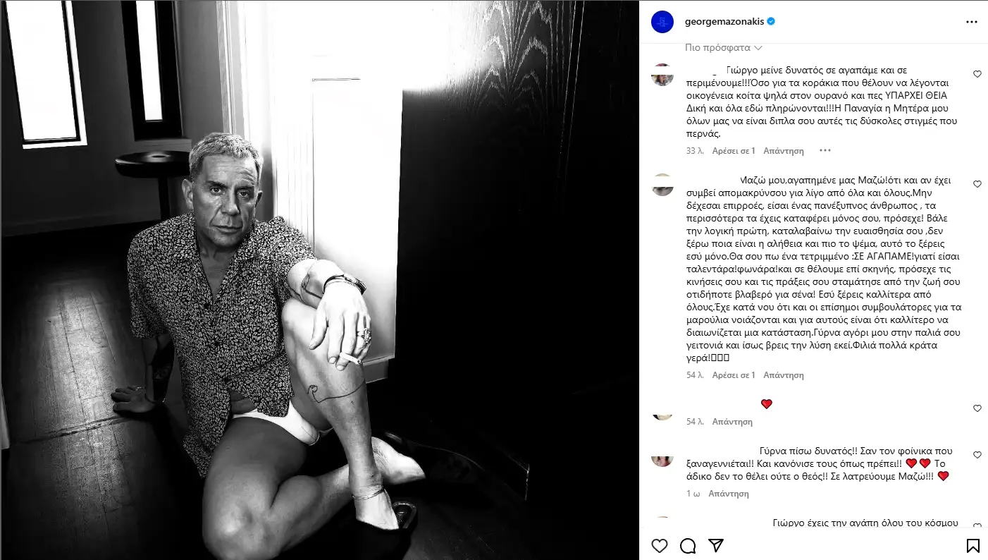 Ο Γιώργος Μαζωνάκης είχε δημοσιεύσει την τελευταία του ανάρτηση στο Instagram την Τετάρτη 2 Ιουλίου, όπου ποζάρει με χάρη στον φακό.