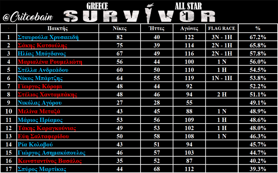 Survivor All Star: Ο Πίνακας με τις επιδόσεις των παικτών