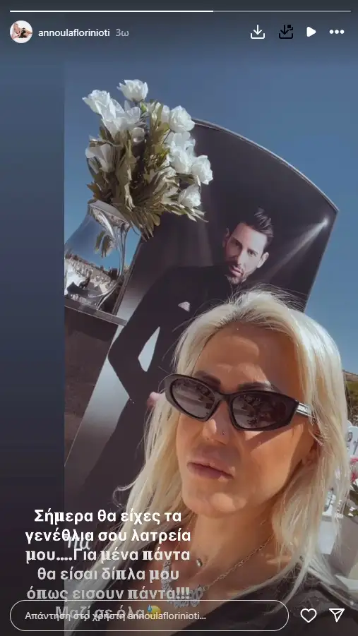 Αναρτώντας ένα selfie βίντεο από το Νεκροταφείο, η Αννούλα Φλωρινιώτη έγραψε χαρακτηριστικά: «Σήμερα θα είχες τα γενέθλιά σου λατρεία μου… Για μένα πάντα θα είσαι δίπλα μου, όπως ήσουν πάντα! Μαζί σε όλα».