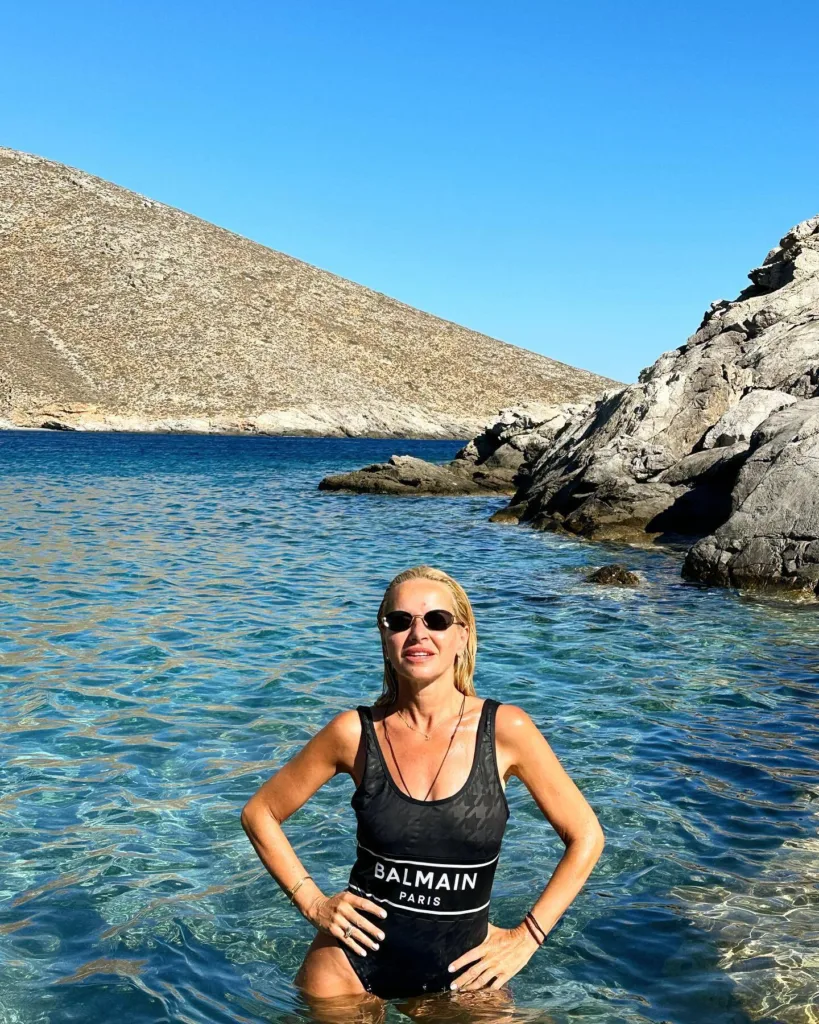 Μύκονος, Σύρος, Κίμωλος και, φυσικά, το αγαπημένο της νησί, την Κεφαλλονιά, έχει ήδη επισκεφθεί η παρουσιάστρια του «The Chase» του MEGA. Φορώντας το μπικίνι της και με υπέροχη διάθεση κατάφερε να μαγνητίσει τα βλέμματα με τη γυμνασμένη σιλουέτα της. Η οικοδέσποινα του τηλεπαιχνιδιού, εδώ και καιρό, έχει αδυνατίσει, ενώ έχει μιλήσει ανοιχτά γι’ αυτήν την προσπάθεια. «Αρχισα, λοιπόν, να τρώω λιγότερο και με διατροφή που έκανα μόνη μου πέτυχα το αποτέλεσμα που βλέπεις. Αποφεύγω τα γαλακτοκομικά και τη ζάχαρη. Μία στο τόσο μπορεί να φάω ένα γλυκάκι», έχει παραδεχθεί σε παλαιότερη συνέντευξη.