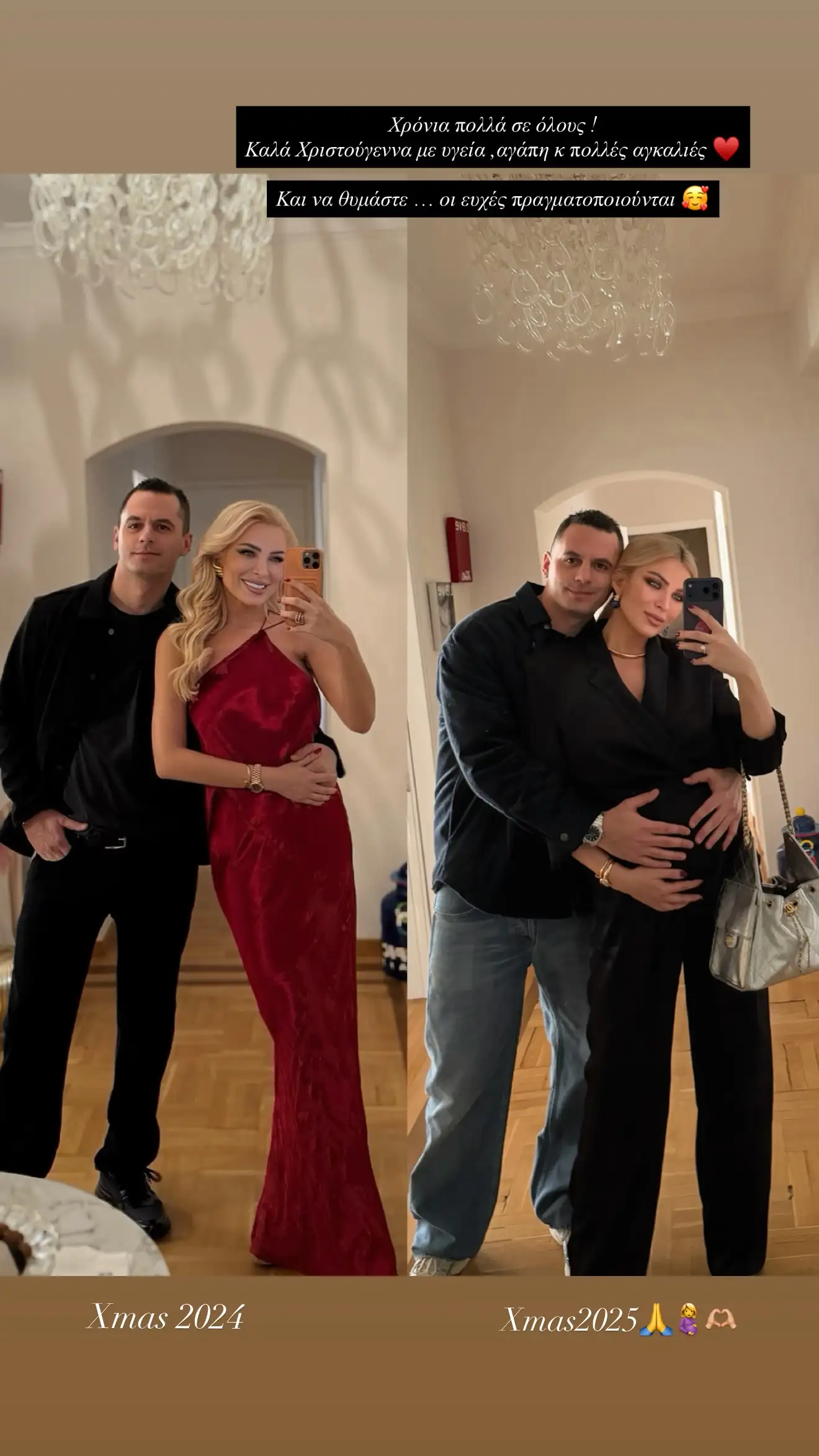Η παρουσιάστρια δημιούργησε ένα κολάζ με τις δύο φωτογραφίες και το συνόδευσε με το μήνυμα: «Χρόνια πολλά σε όλους! Καλά Χριστούγεννα με υγεία, αγάπη και πολλές αγκαλιές. Και να θυμάστε… οι ευχές πραγματοποιούνται».