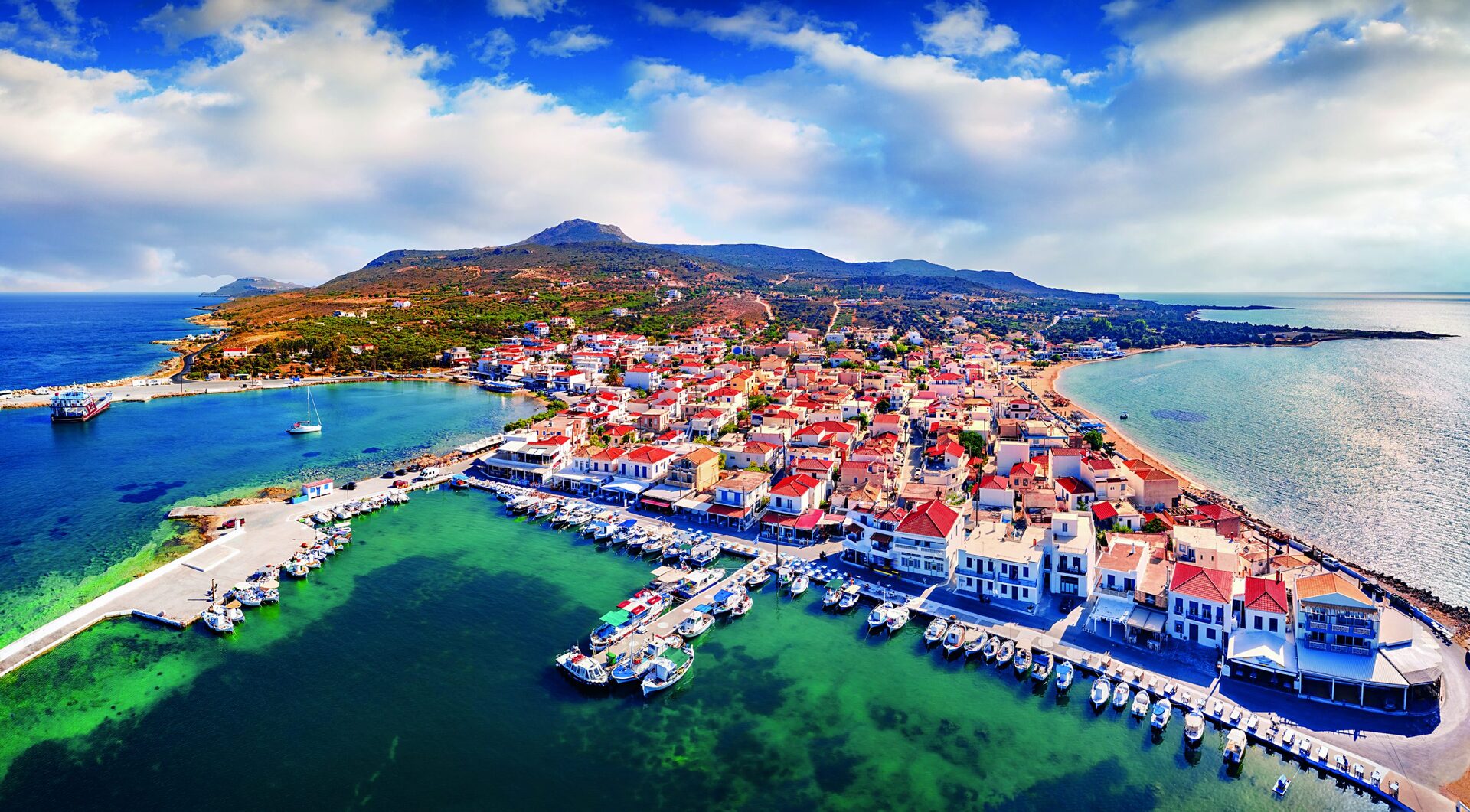 Κατευθυνθείτε προς το λιμάνι. Λίγα λεπτά μετά, θα βρείτε την όμορφη παραλία της αγκάλης της Λεύκης, η οποία φυλάσσεται από τον δυνατό αέρα και το κύμα.
