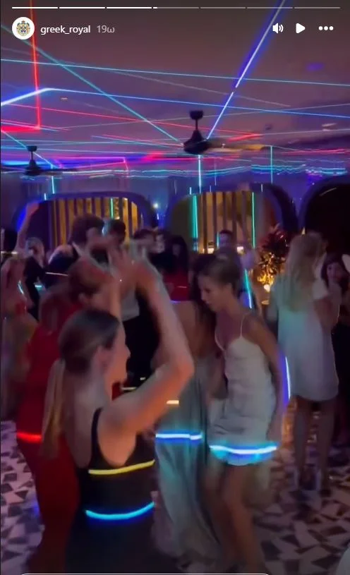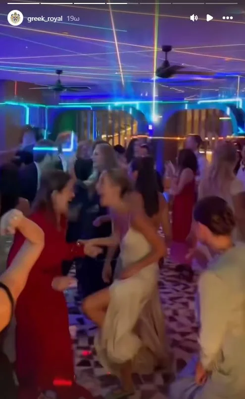 Συγκεκριμένα, στο βίντεο εικονίζονται η Μαρία Ολυμπία, κόρη του Παύλου Γλύξμπουργκ και της Μαρί Σαντάλ και παράνυμφος στον γάμο της Θεοδώρας, να χορεύει σε έξαλλο ρυθμό με τη θεία της, Αλεξία Γλύξμπουργκ, όπως επίσης και τη Νίνα Φλορ, σύζυγο του Φίλιππου Γλύξμπουργκ.