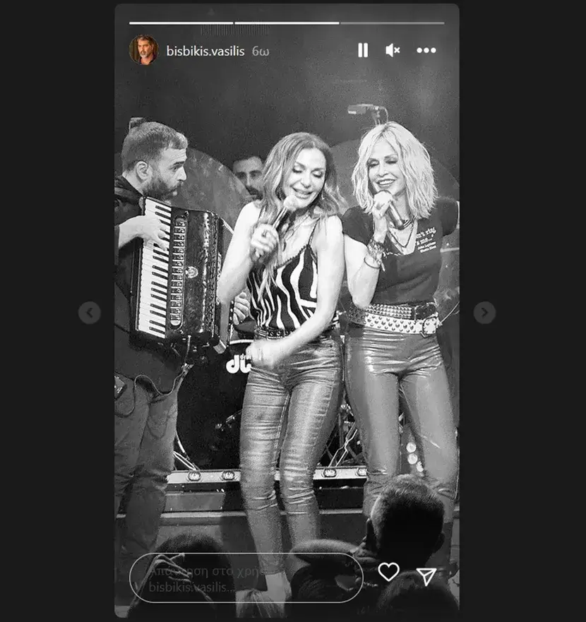 Ενώ και ο Βασίλης Μπισμπίκης δημοσίευσε στιγμιότυπο και είδαμε τις δύο γυναίκες να τραγουδούν μαζί!