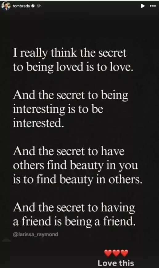 Ο θρύλος του NFL μοιράστηκε στα Instagram Stories του, ένα απόσπασμα σε μαύρο φόντο για το «μυστικό για να σε αγαπούν».