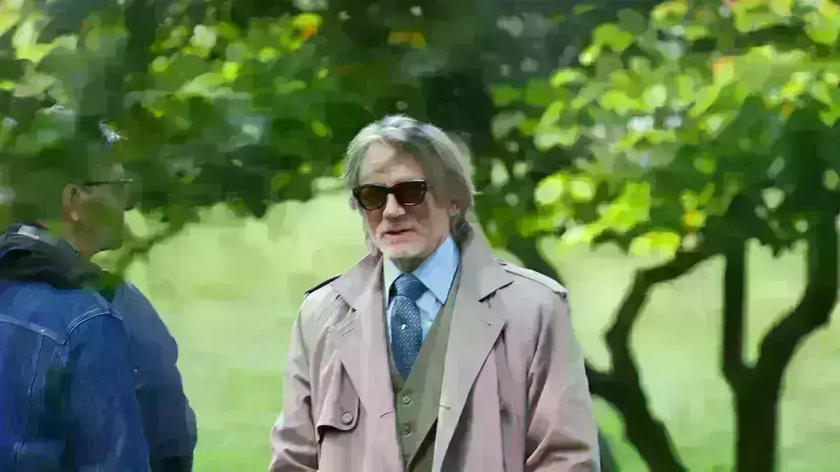Στις νέες φωτογραφίες που τραβήχτηκαν στα γυρίσματα, ο ηθοποιός του No Time To Die φαινόταν διαφορετικός με γκρίζα μαλλιά μέχρι τους ώμους. Μεταμορφώθηκε σε αληθινό ντετέκτιβ με μια κλασική μπεζ καμπαρντίνα πάνω από το γαλάζιο πουκάμισο με κουμπιά, τη μπλε γραβάτα και το παντελόνι του. Εθεάθη να περπατά μέσα από ένα πάρκο ενώ κρυβόταν από τον ήλιο με γυαλιά ηλίου από ταρταρούγα.