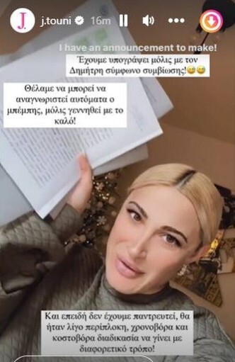 Η Ιωάννα Τούνη το ανακοίνωσε στον προσωπικό της λογαριασμό στο Instagram, δείχνοντας τα έγγραφα.