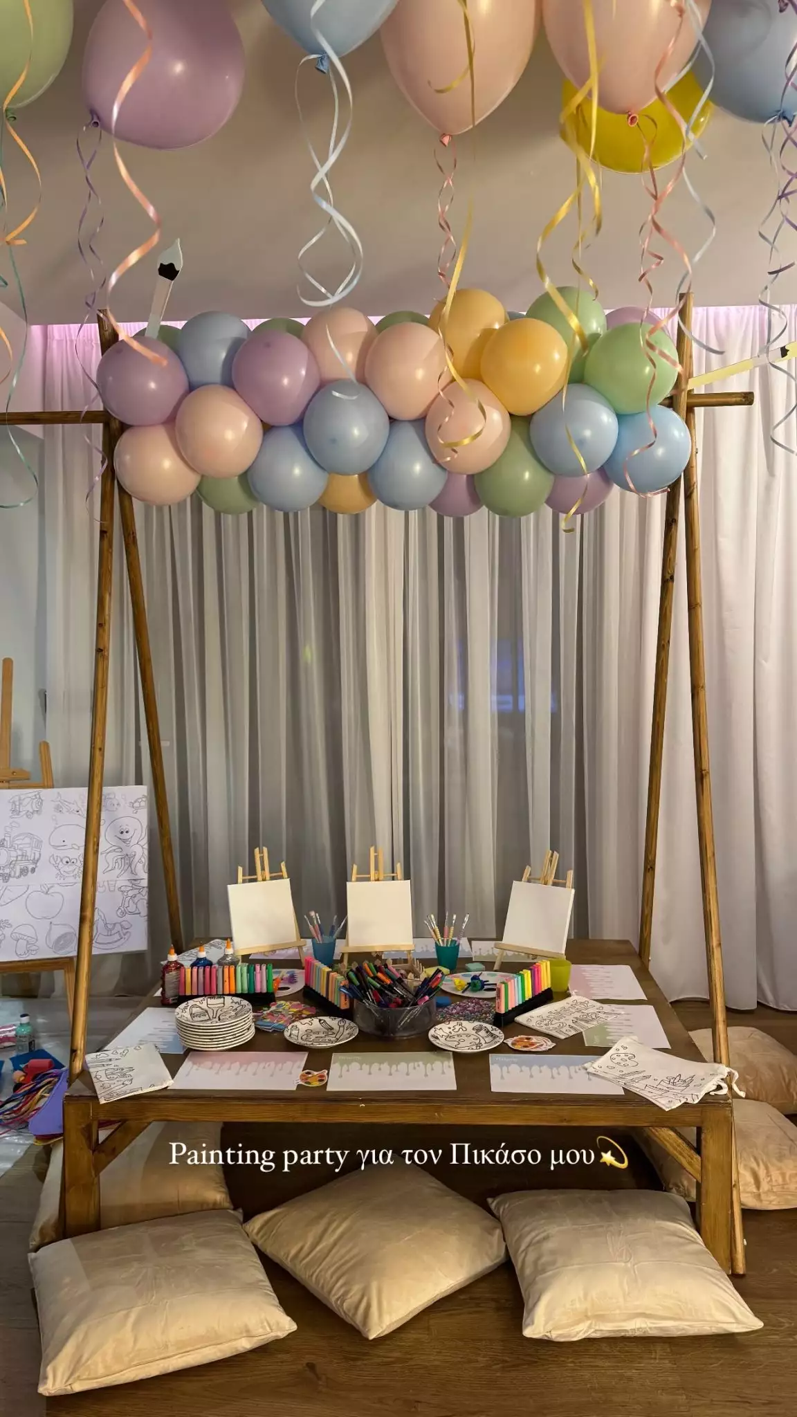 Το πάρτι γενεθλίων είχε θέμα τη… ζωγραφική. Ο χώρος μεταμορφώθηκε με καβαλέτα, πινέλα, και μπογιές, προσκαλώντας τους μικρούς καλεσμένους .